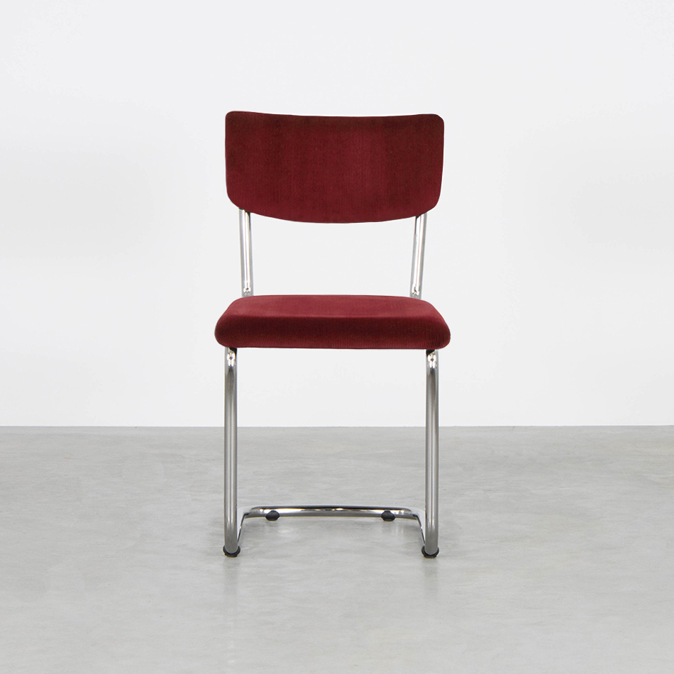 Deze buisframe stoel Elsene is leverbaar in verschillende soorten en kleuren stof. Standaard is de stoel leverbaar in Manchester ribstoffen. Het is ook mogelijk om te kiezen voor een van de vele andere stoffen die we hebben. We hebben stoffen van Keymer, Lancier, Textaafoam, Kvadrat, De Ploeg en Gabriel. Je kunt de stoffen in onze showrooms komen bekijken.