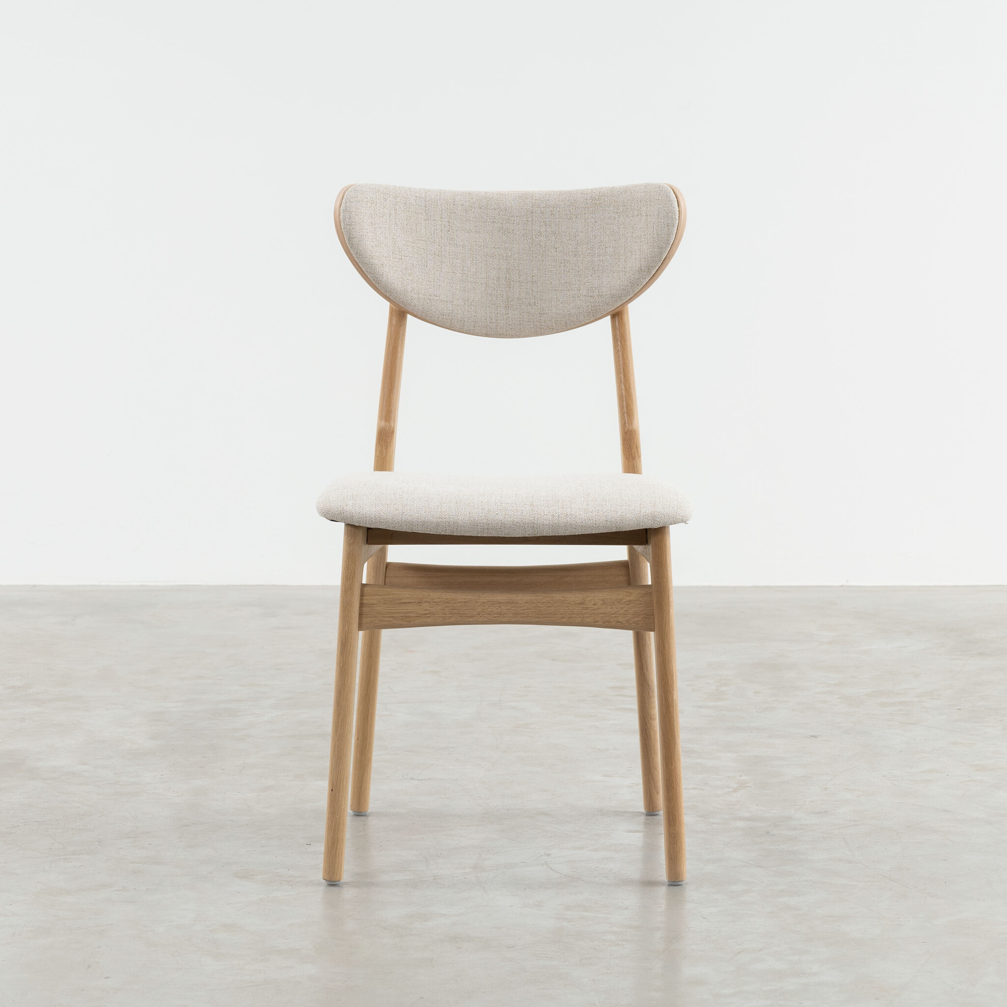 Eetkamerstoel Enni heeft een mooi eenvoudig onderstel en een comfortabele gestoffeerde zitting en rugleuning. De zichtbare houten rand in de rugleuning geeft de stoel een gelaagde touch. De gestoffeerde zitting oogt warm en uitnodigend. Op de Deense stoel Enni kun je uren tafelen!