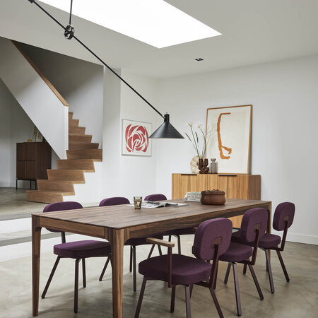 Onze design tafels worden gemaakt van hoogwaardige houtsoorten zoals massief eiken, walnoot en beuken. Een aantal van onze ontwerpen hebben een stalen frame, wat zorgt voor een industriële uitstraling. Zo ontstaat een mooi contrast tussen warm hout en koel metaal – perfect voor een interieur met karakter.
