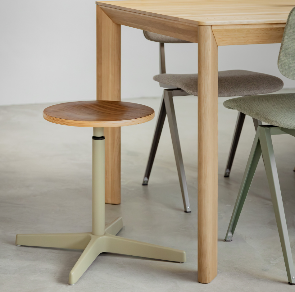 De Jops kruk is bovendien in hoogte verstelbaar, van 45 cm tot 56 cm, zodat iedereen comfortabel kan zitten. Oorspronkelijk ontworpen voor de werkplaats, is deze kruk met zijn industriële look steeds vaker te vinden in woonkamers, keukens en restaurants. Zonder grof te zijn, biedt de Jops een stoere, maar verfijnde uitstraling.