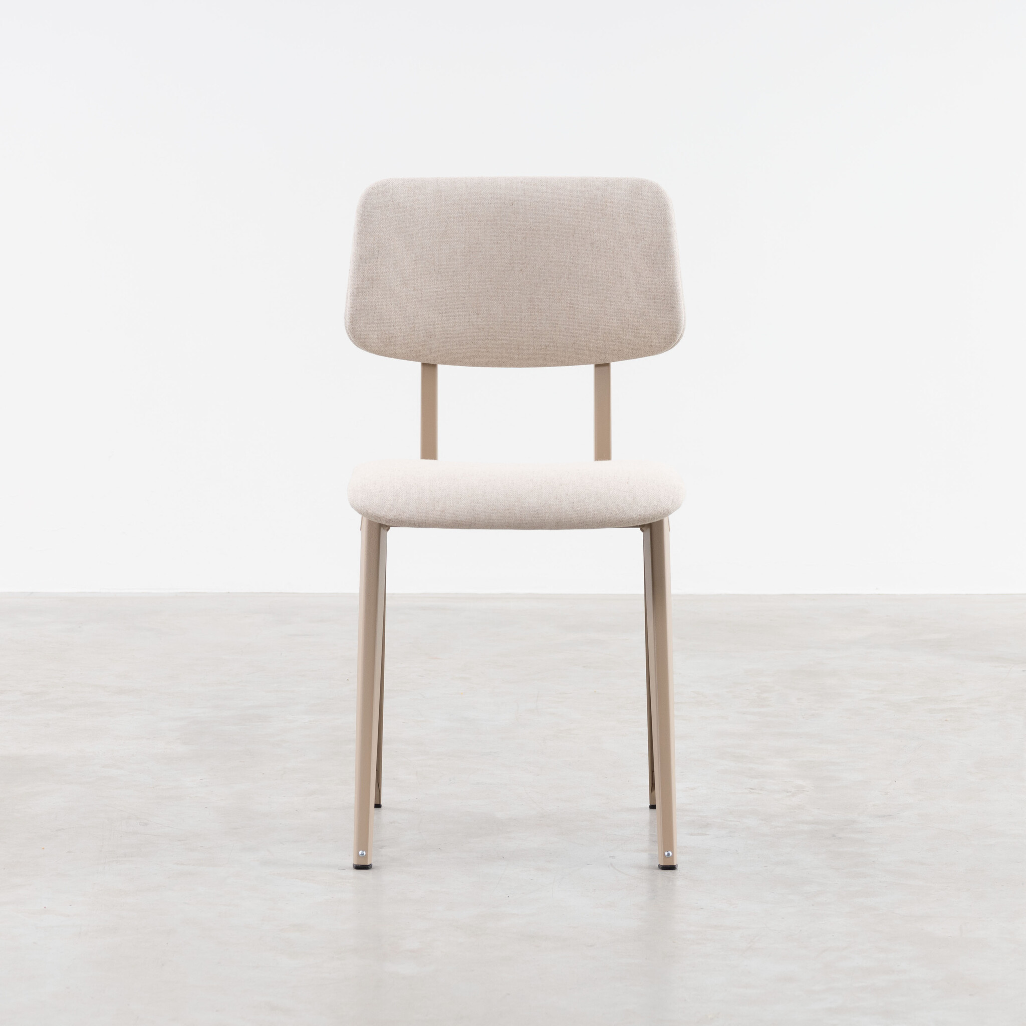 Materiaal: frame gemaakt van gevouwen plaatstaal. Zitting en rugleuning gestoffeerd.