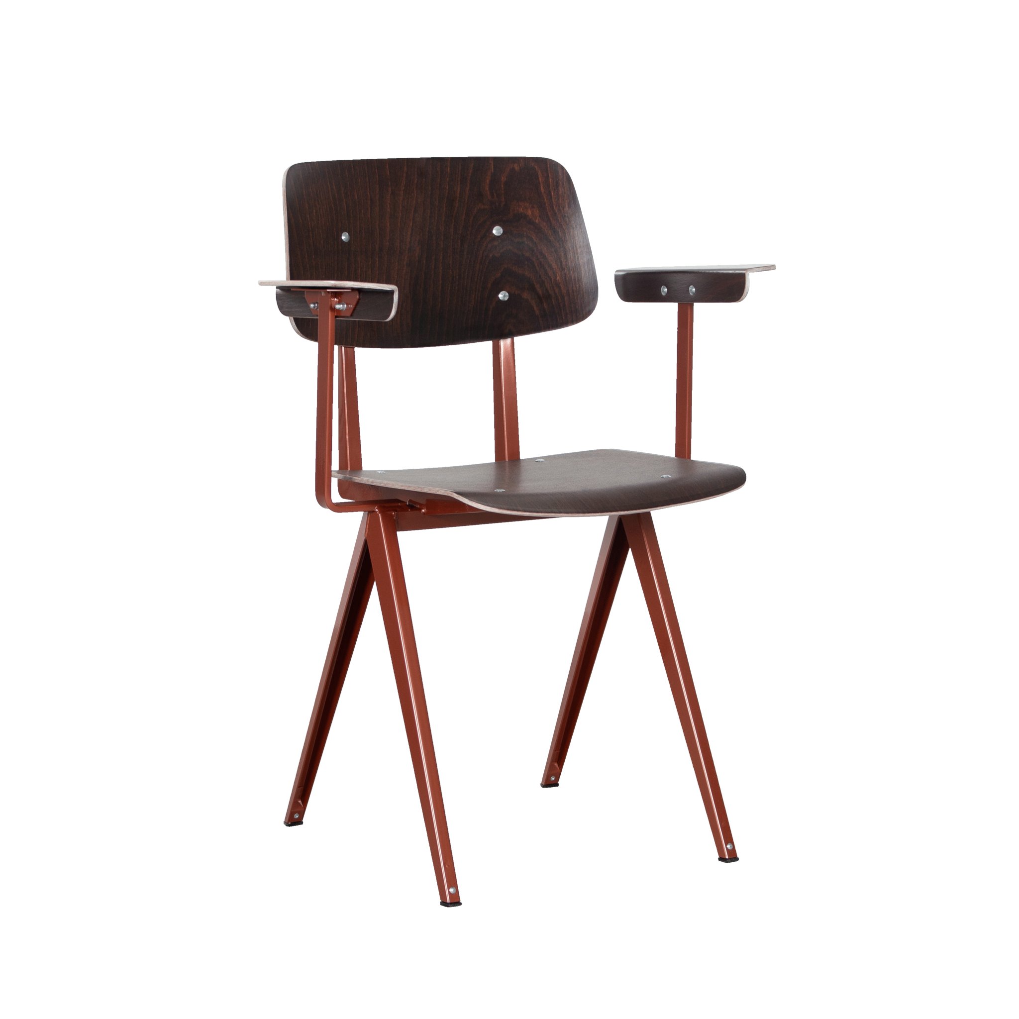 Materiaal: frame gemaakt van gevouwen plaatstaal. Zit- en rugleuning van kunsthars plywood hout.
