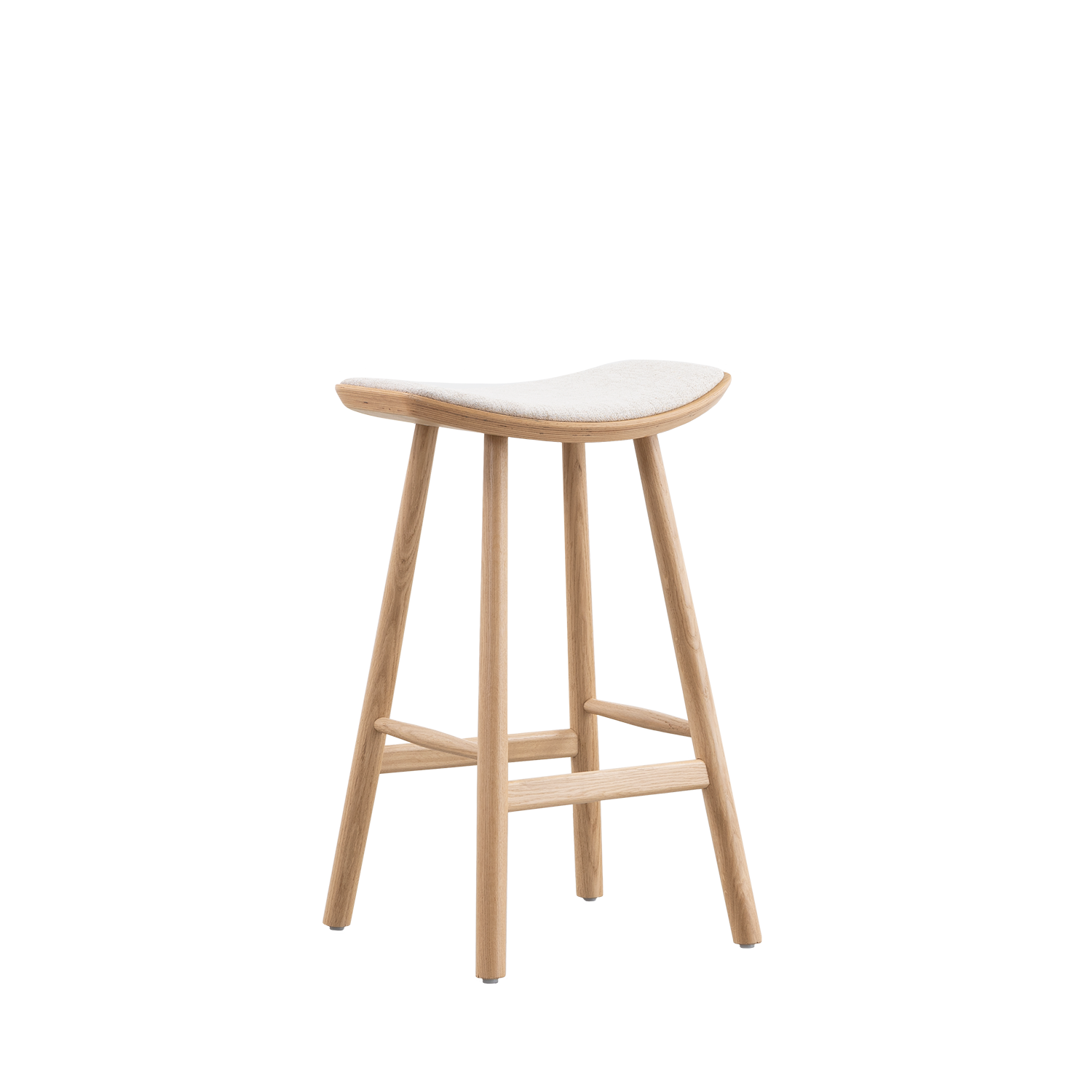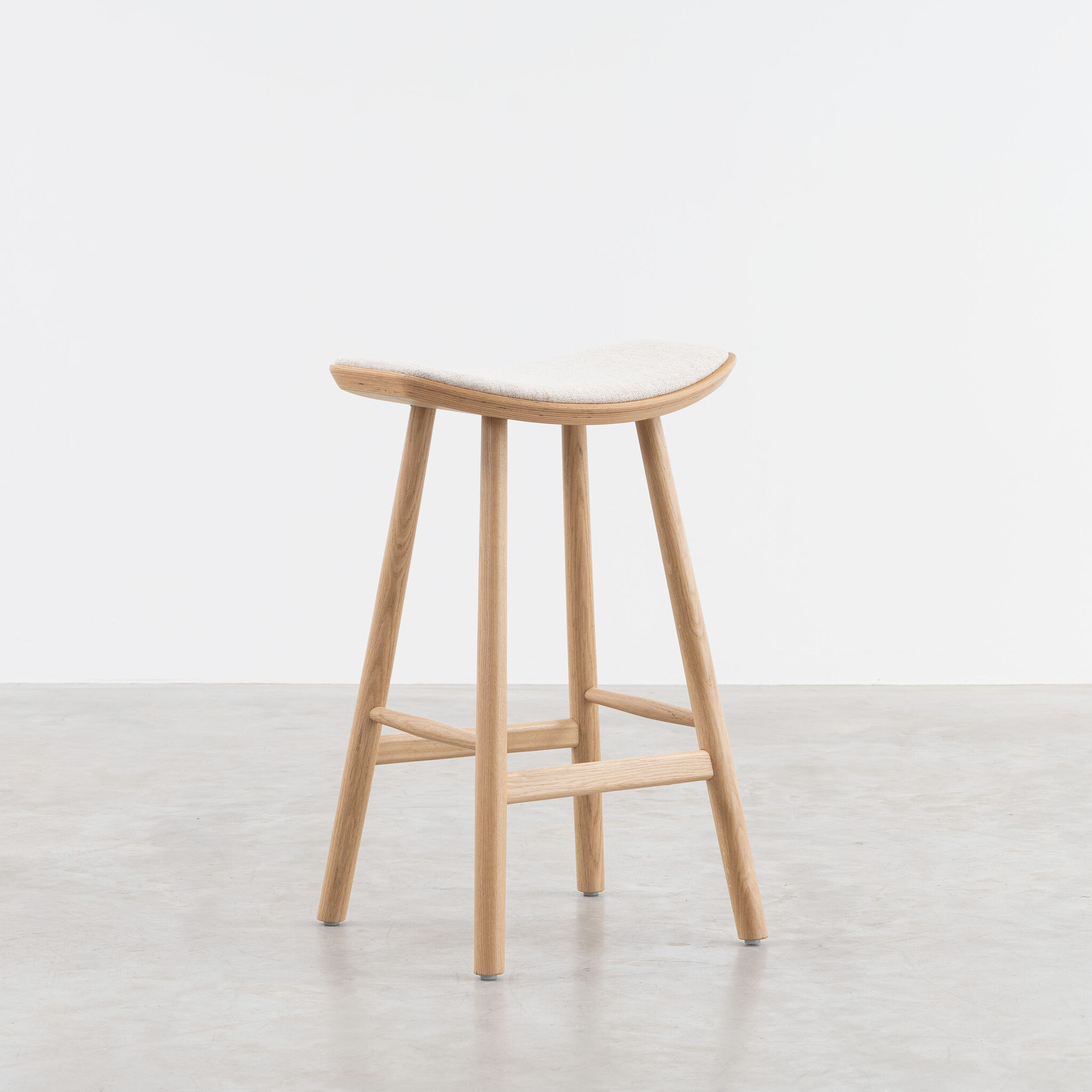 Met een zithoogte van 65 cm is de Silja perfect voor aan het kookeiland. De zitting is licht gebogen en voorzien van opdekstoffering in de warme, geweven stof Member Beige 05. De afgeronde vorm ondersteunt een natuurlijke zithouding, zodat je er moeiteloos langere tijd op zit.