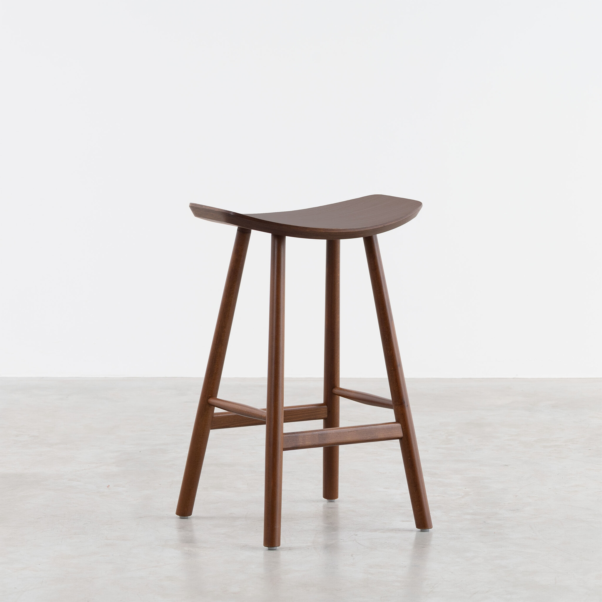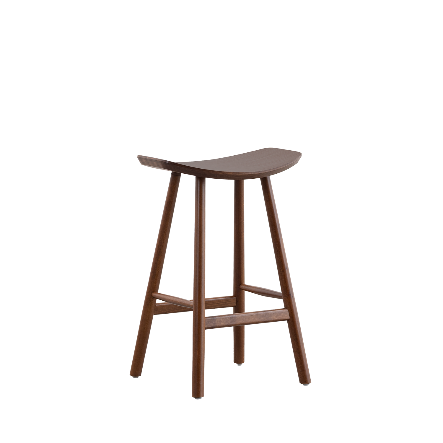 De Silja is een elegante counter barkruk van massief beukenhout, afgewerkt in een warme walnootkleur. Dankzij het slanke ontwerp, de afgeronde vormen en strakke lijnen past deze kruk perfect in een modern interieur met een knipoog naar Deens design.